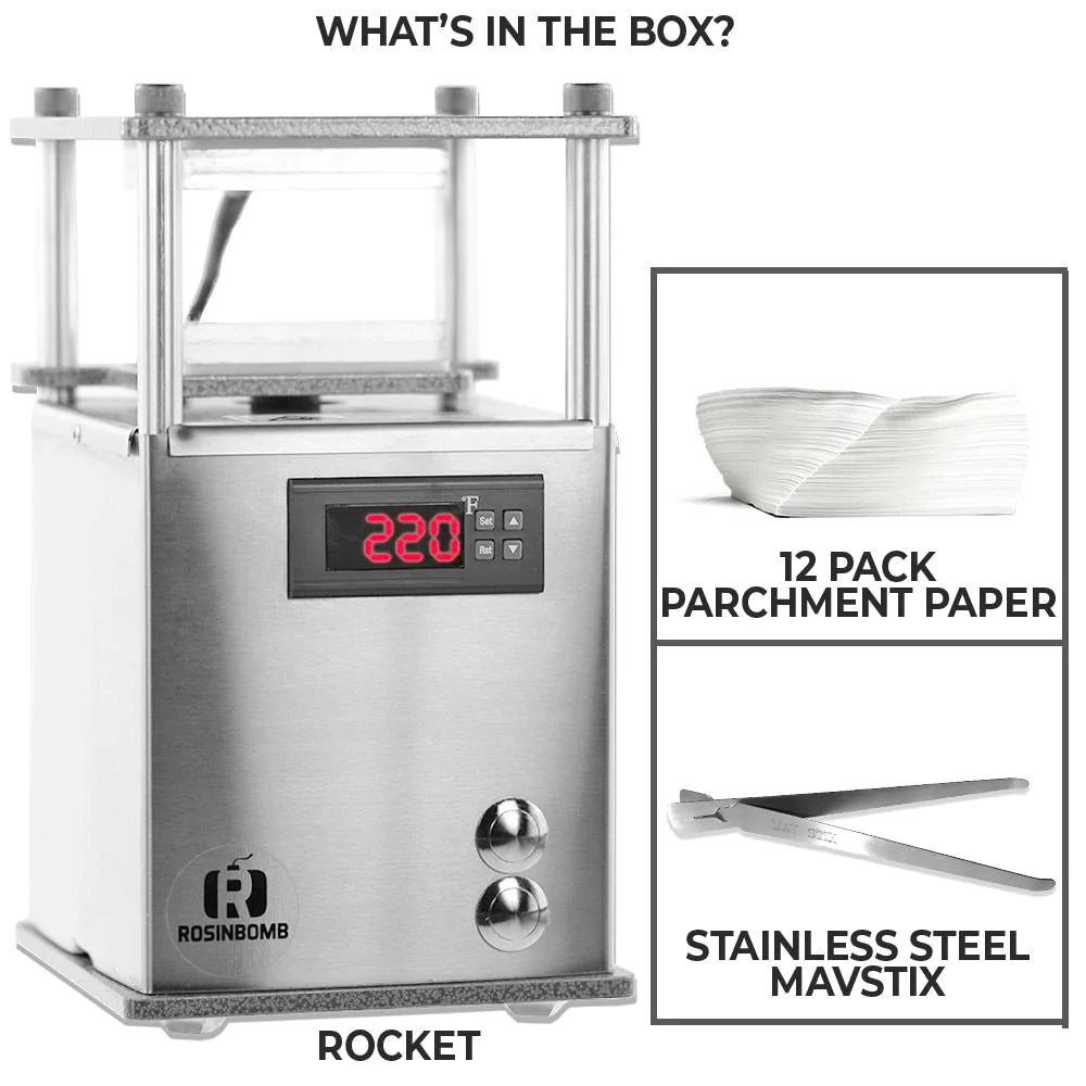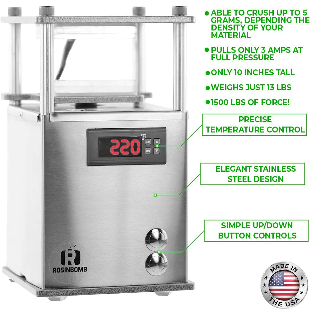 Compact, powerful, and super easy to use. The Rocket is small enough to fit inside a backpack and weighs only 13 lbs, but delivers over 1500 lbs of force. It is extremely quiet and all-electric. That means no noisy air compressors and no manual pumps required. Use the Rocket to create fresh, clean extracts at home and with friends. With your own press, the options are endless -- press any one of your favorite strains and always know exactly what goes into the extract you make.