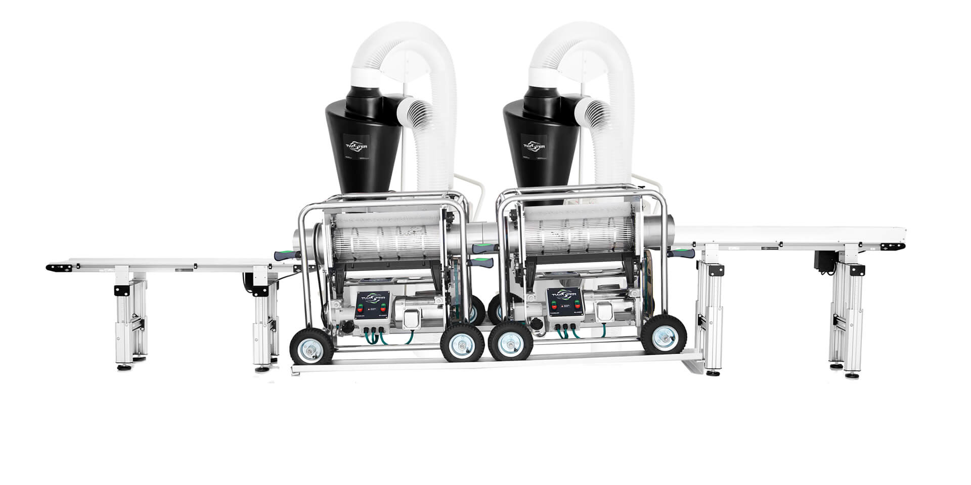 Bucking cannabis on a large scale sucks, but it doesn’t have to. The Twister B4 ‘Bucker’ raises the bar on single piece flow by adding advanced, patent-pending cannabis bucking technology to your process flow, replacing the work that crews of 5-7 used to do by hand. Process up to 150+ lbs/hr (fully hydrated) with one unit!